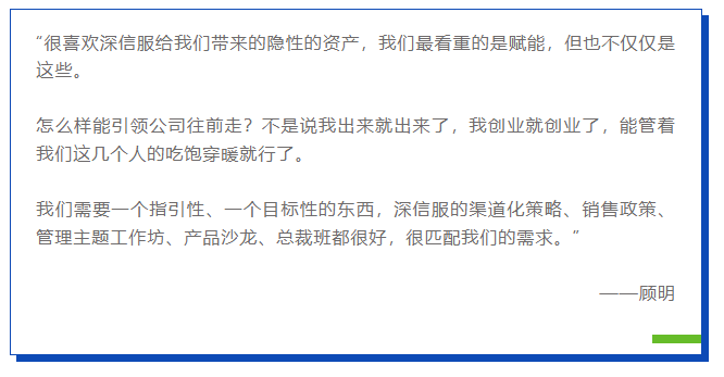 顾明是技术出身,刚创业时,对于公司层面的人才规划,还处于摸索阶段,深信服与河南守仁一起,把公司架构、人才架构设计、工程师配比、薪资架构,在双方合作的2年2个月期间,都配到位了。