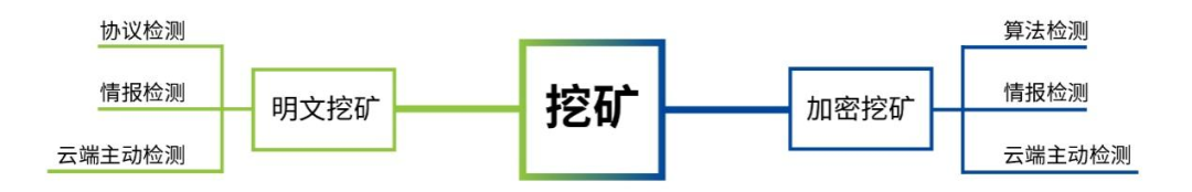 挖矿币种、协议与矿池地址快速迭代,新型币种“挖矿”通讯过程天然自带加密信息等因素导致“挖矿”检测难度增大。针对不同类型的“挖矿”方式,需要构建差异化的分析算法,匹配更全面的情报能力。