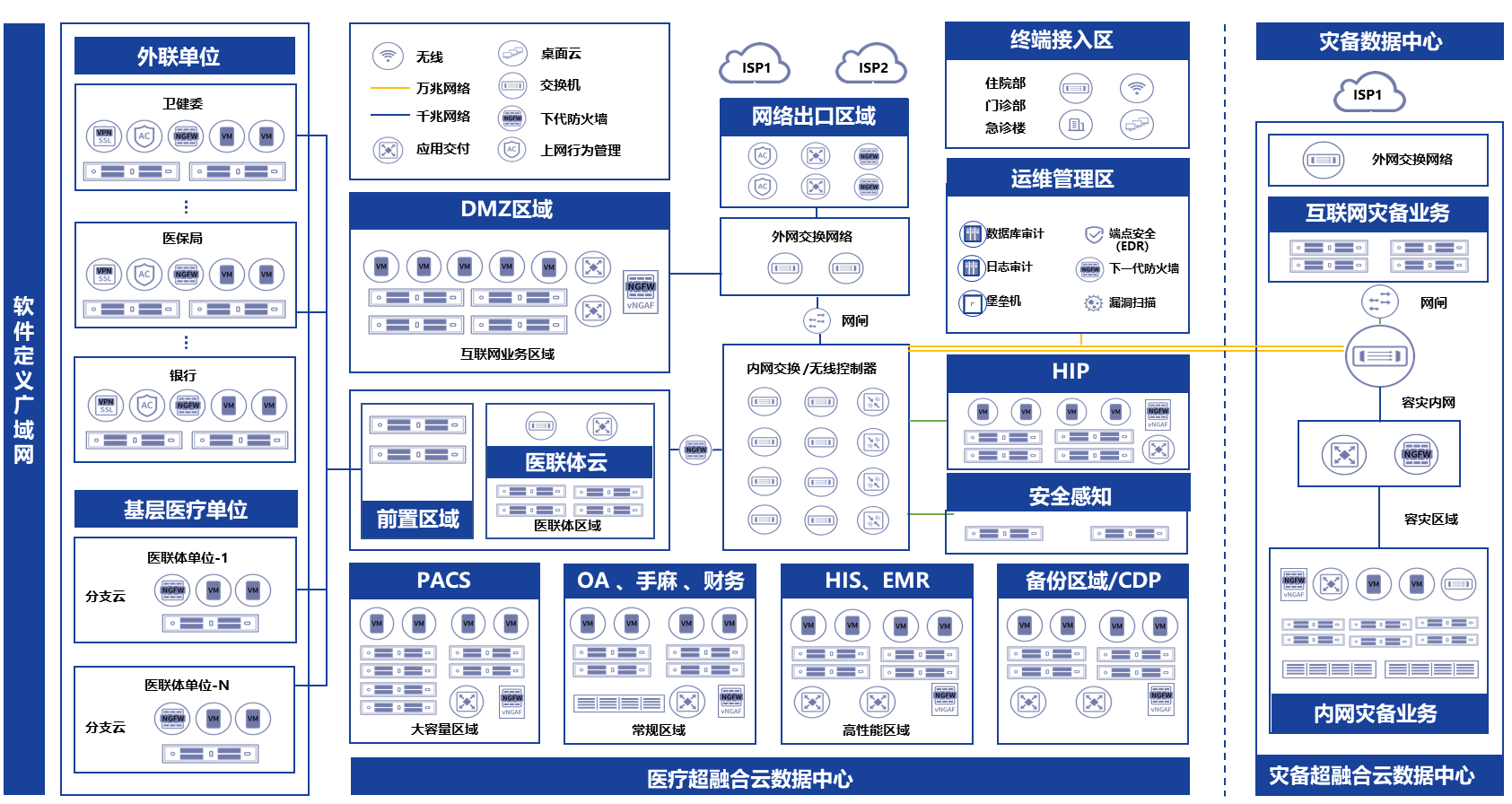 构筑基于软件定义加固的医院云平台,整合电子病历、电子健康档案、集成平台等业务通路,构建智慧医疗体系,用超融合定义智慧医院、医疗大数据、“互联网+”医疗等标准业务平台,打破数据孤岛,整合数据资源,构建稳定、安全的超融合云化解决方案。