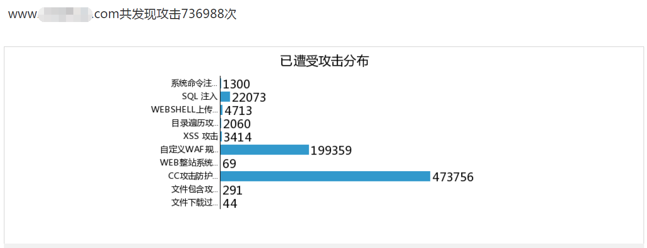 持续的安全服务,为用户拦截了73W+次攻击,攻击拦截分布情况如下图: