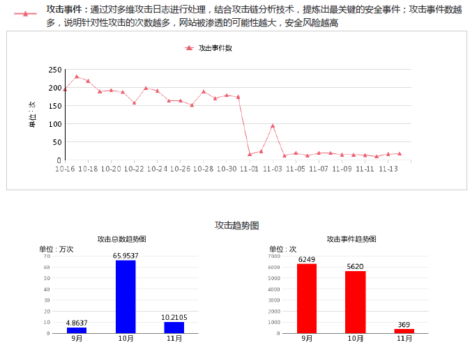 日报、月报、事件报告、值守报告、风险评估报告等丰富的安全报告,详细展示业务安全状况,随时随地掌握新情况。